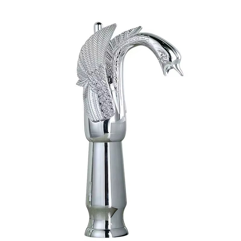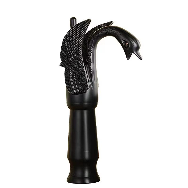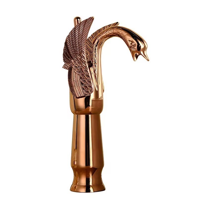 Antique Brass Swan Shape Bathroom Sink Mixer Faucet Single Handle One Hole Basin Tap with Hot and Cold Hose Copper Electroplated Vintage Washroom Water Tap