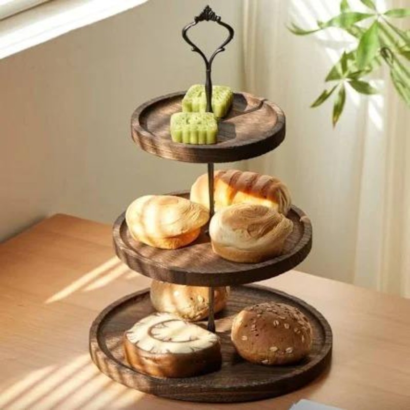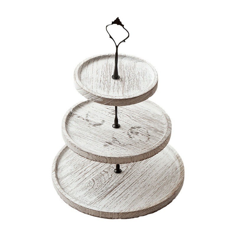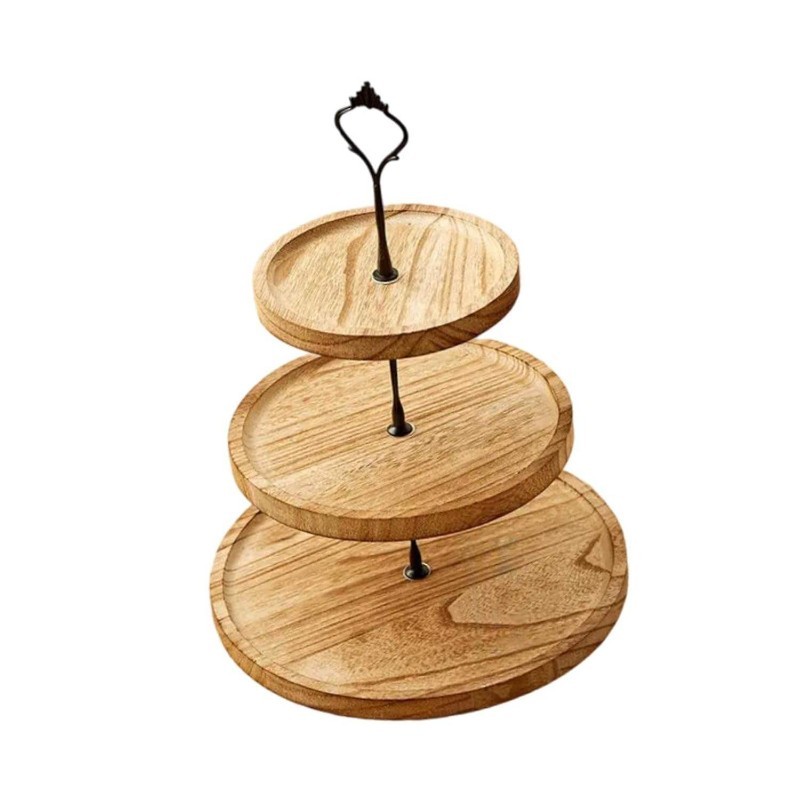Three Tier Wooden Cake Stand Multi Layer Dessert Display Rack Solid Wood and Iron Frame High Leg Tray for Fruit Pastry Sweet Treat Tabletop Decor