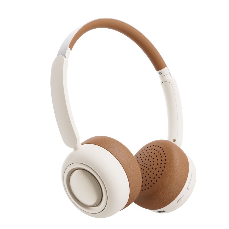 Cute Retro Style Cream Color Bluetooth 5.4 Headphones Metal Binaural Wireless Headset HiFi Stereo Over Ear Foldable Sports Travel Lightweight Fashion Headphones