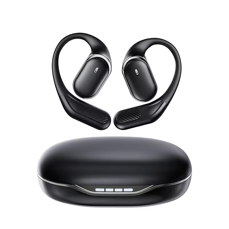 Open Wearable Stereo (OWS) keeps ears open while listening, improving comfort and awareness.