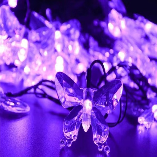 Solar Butterfly String Lights 6.5M 30LED Decorative Garden Fairy Outdoor Waterproof Wedding Party Patio Decor