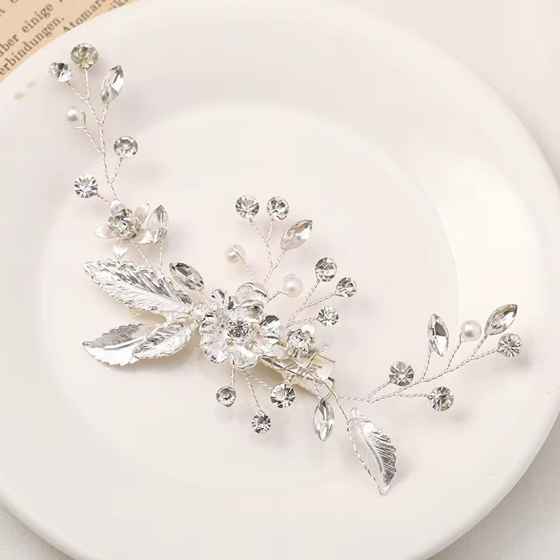 Golden Silver Flower Leaf Crystal Hairpin Hair Clip Bridal Tiara Wedding Hair Accessories Elegant Headpiece Jewelry for Women