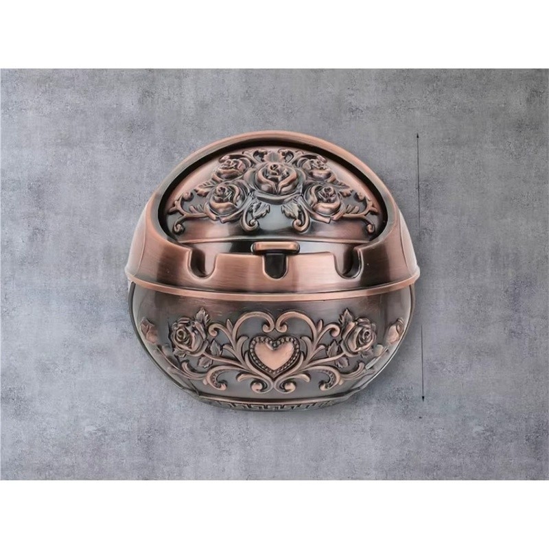 Vintage Metal Windproof Ashtray with Lid Decorative Retro Cigarette and Cigar Holder for Indoor and Outdoor Use
