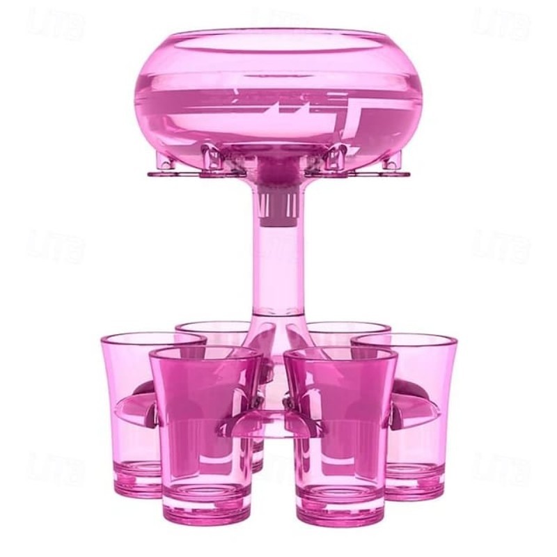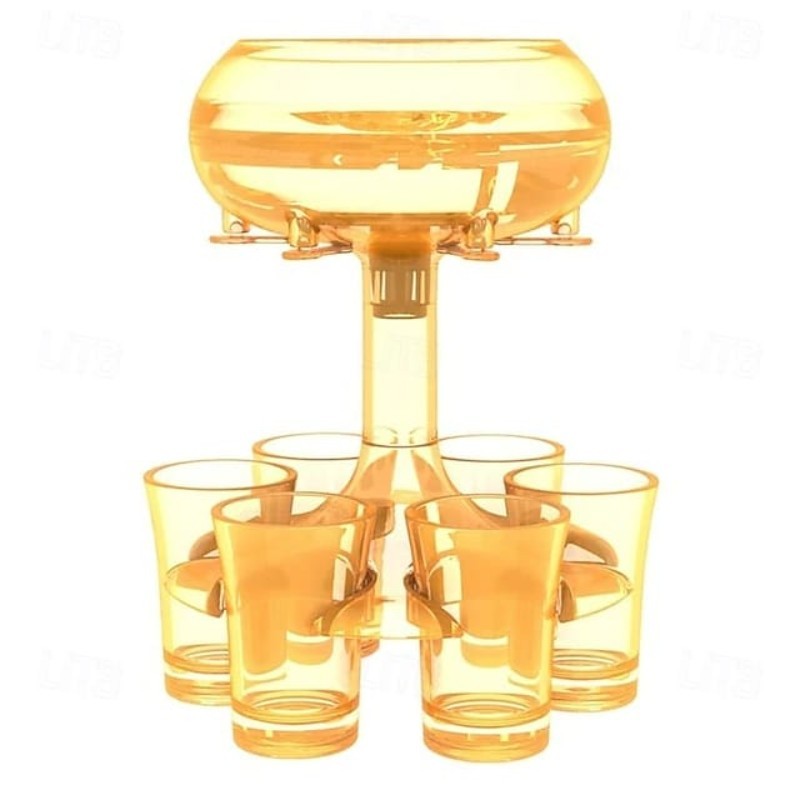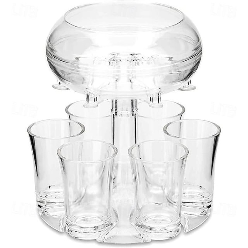 Six Shot Glass Dispenser Acrylic Liquor Dispenser Set With Holder Six Cup Pourer Rack For Whiskey Vodka Cocktail Bar Party Drinkware Gift Set Durable Design