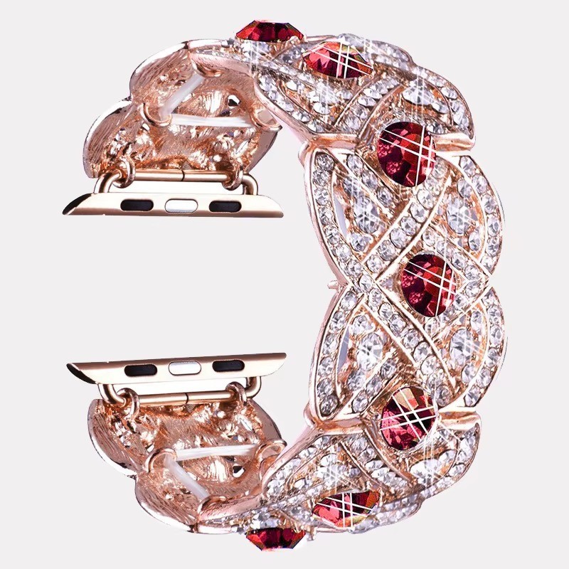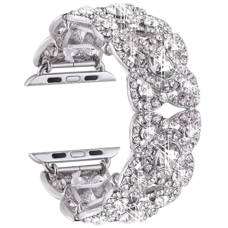 Luxury Diamond Bling Stainless Steel Jewelry Watch Band Compatible with Apple Watch Series Elegant Glitter Bracelet Strap Adjustable Replacement Wristband for Women