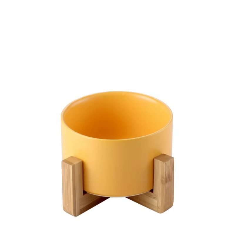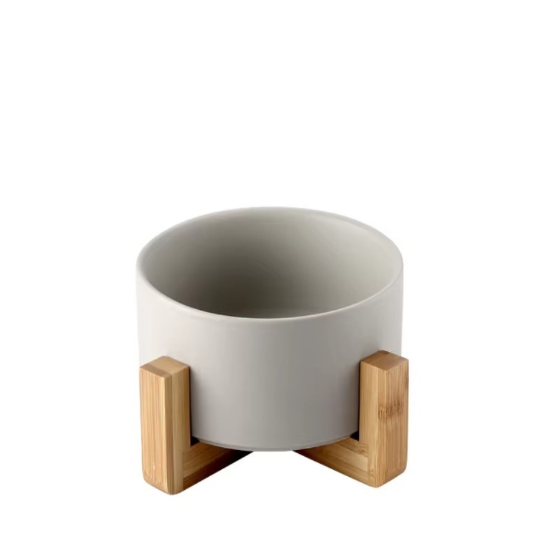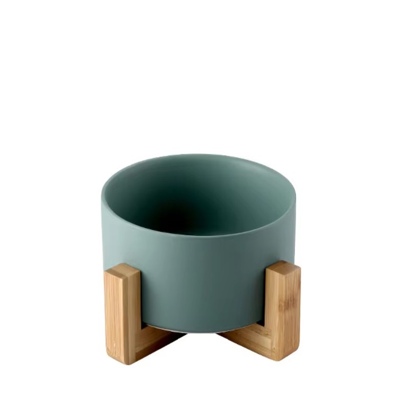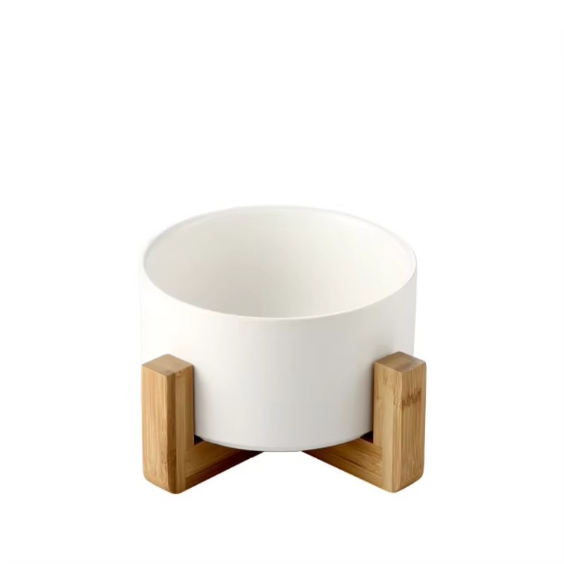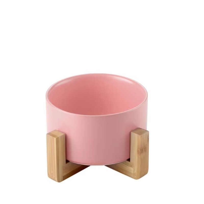 Modern Colorful Ceramic Pet Feeding Bowl with Wooden Base Non Slip Round Design Food Safe Durable Stylish Dog and Cat Feeding Dish Premium Home Decor Bowl
