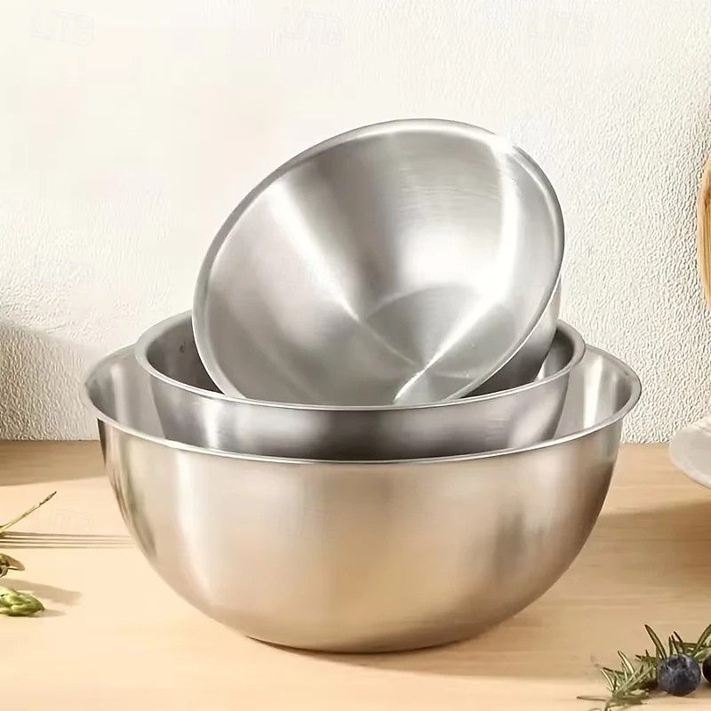 Stainless Steel Mixing Bowl Set with Measurement Markings Stackable Salad Bowls for Baking Cooking Food Preparation and Kitchen Use