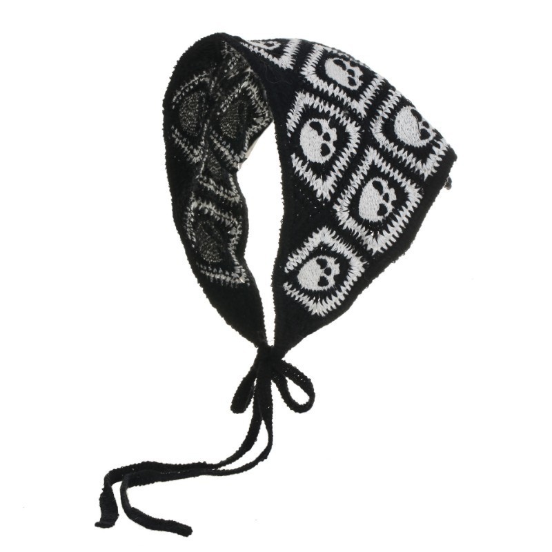 Black Crochet Skull Spider Web Bandana Headscarf Halloween Gothic Headband Handmade Knitted Hair Wrap Women Hair Accessory