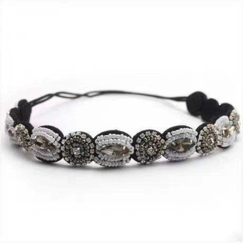 Elastic Rhinestone Beaded Headbands Handmade Vintage Style Hair Bands Multicolor Stretchable Accessories for Women Girls
