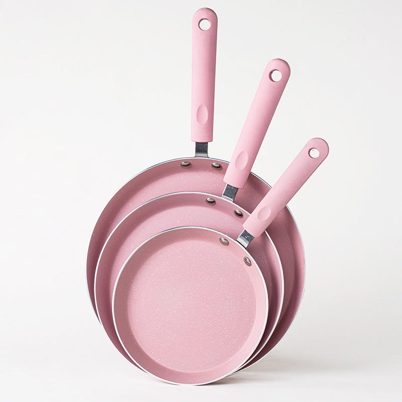 Pink Round Non Stick Frying Pan Induction & Gas Compatible Aluminum Cookware, Even Heat Distribution, Easy Clean, Lightweight Kitchen Fry Pan for Daily Cooking Use