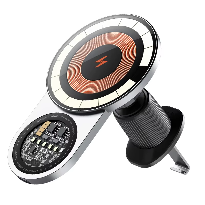 A8 Magnetic Wireless Car Charger Holder 15W Fast Charging Strong Suction 360 Degree Adjustable Mount for iPhone Android Silver