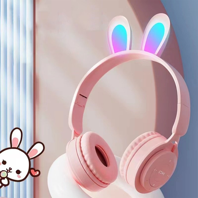Wireless RGB Rabbit Ear Headset with Noise Cancelling Microphone, Stereo Sound and LED Lighting Earphones for Gaming Mobile Phones Laptop and Tablet