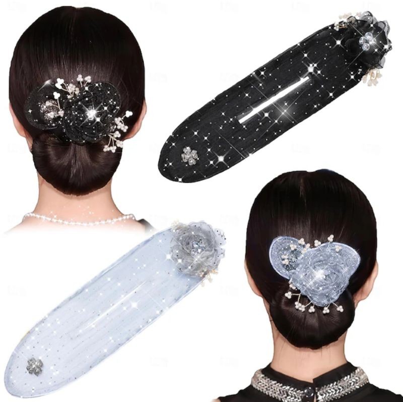 Hand Embroidered Flower Deft Bun Hair Maker French Hair Twister Sparkly Ball Bun Roller Clip for Long Thick Hair Accessories Women