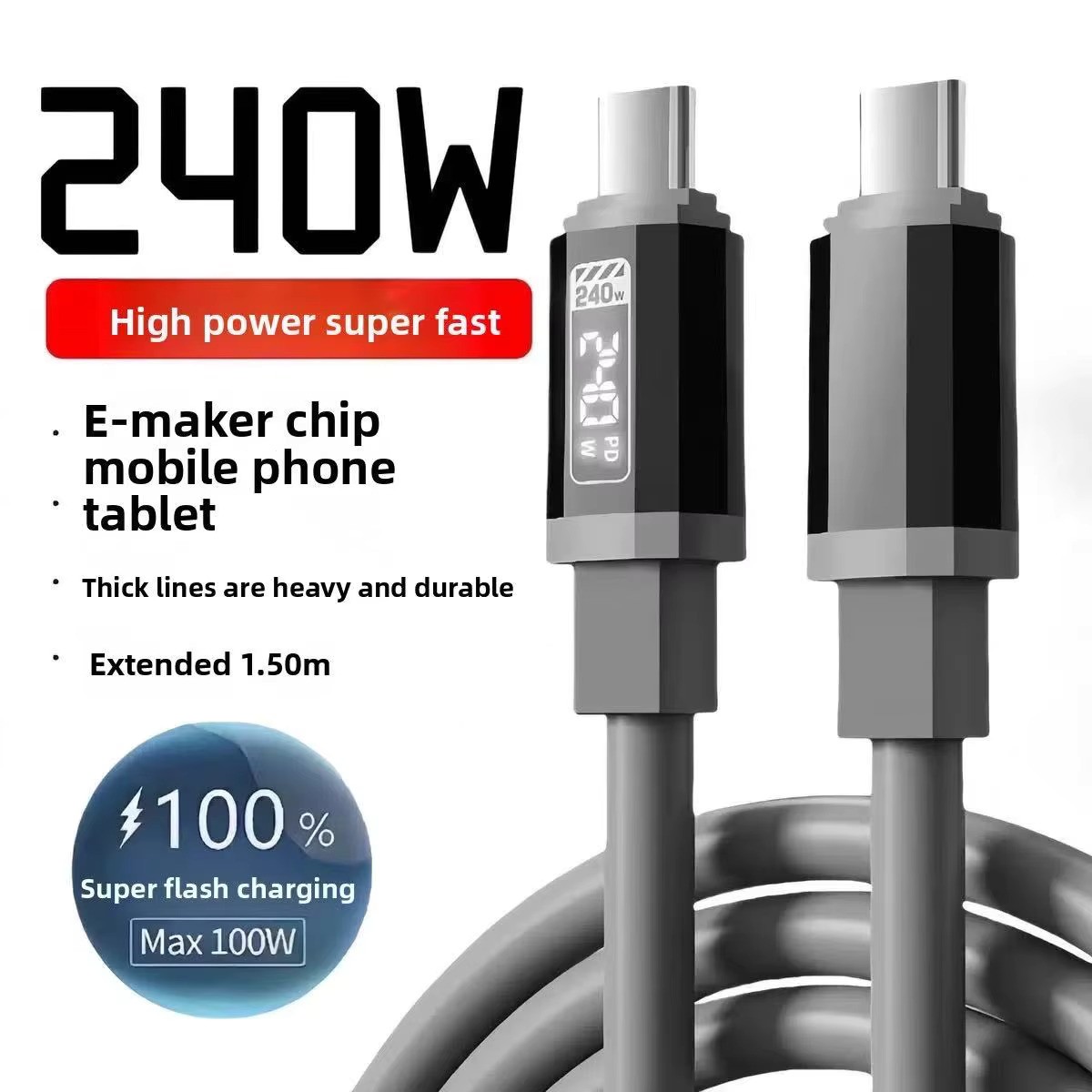 PD240W Type C Fast Charging Cable With LED Display for Apple 15 16, Silicone Smart Durable Cord for Laptop, Tablet, Phone