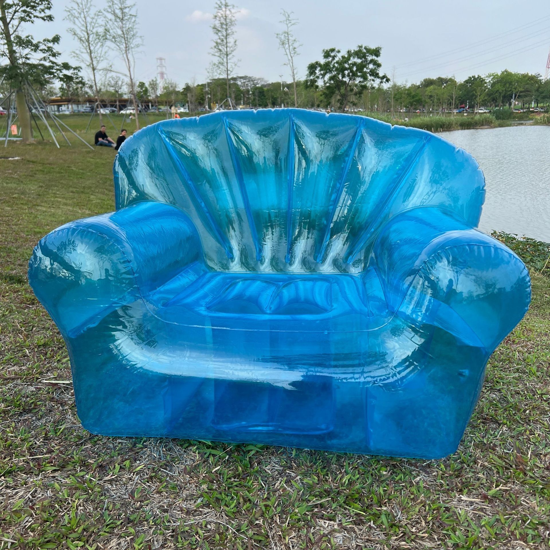 Thickened Outdoor Inflatable Sofa Lazy Transparent PVC Chair Adult Camping Stool Lightweight Portable Blow Up Seat for Travel Beach Picnic