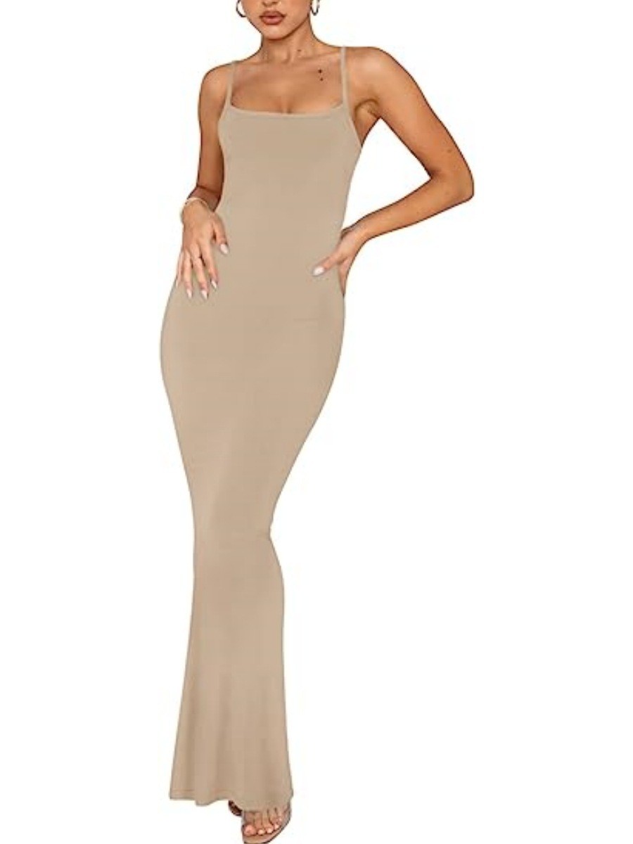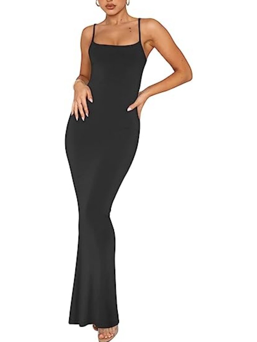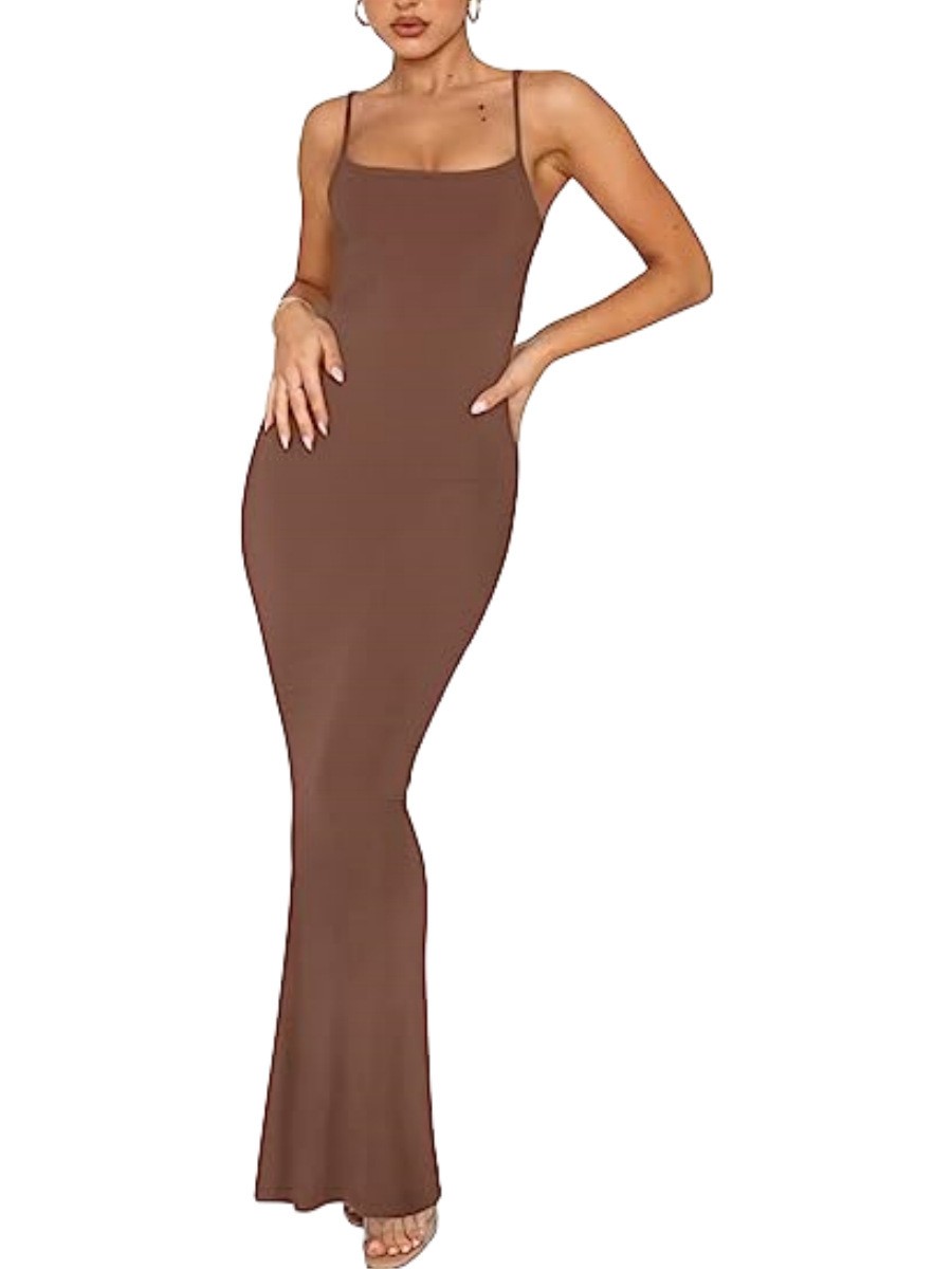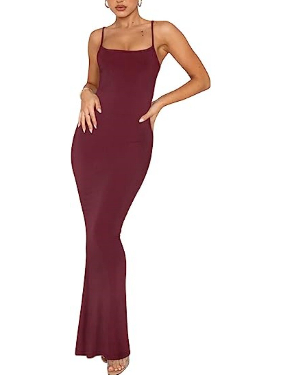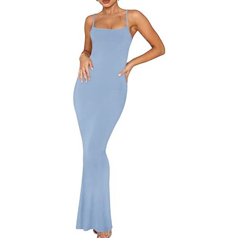 Elegant Mermaid Hem Strappy Maxi Dress for Women with Slim Fit, Adjustable Spaghetti Straps, and Flowing Hemline Perfect for Parties, Weddings, or Evening Events