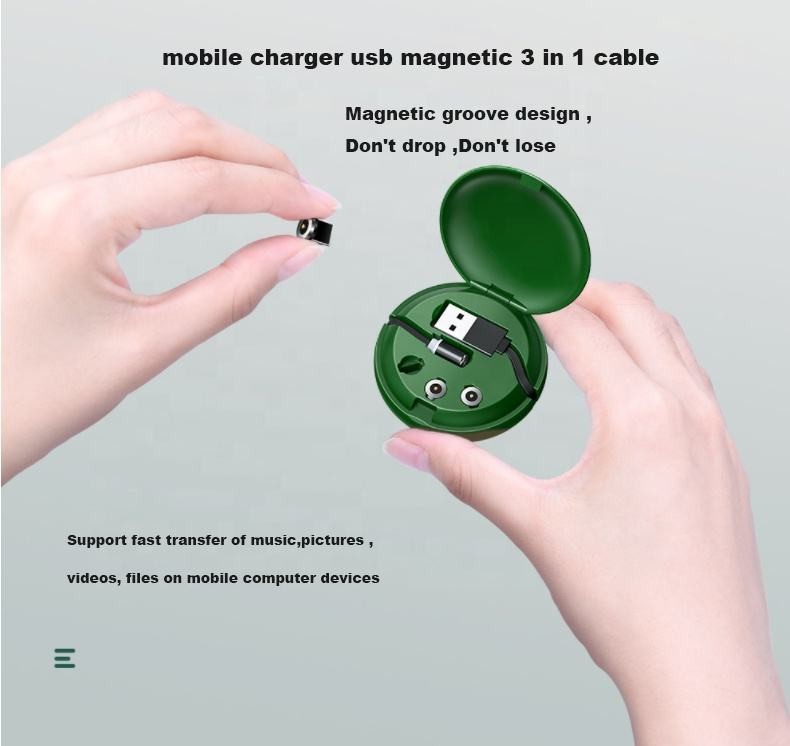 Retractable Storage Macaron Magnetic Three in One Data Cable Mobile Phone Charger Head Universal Fast Charging Cable