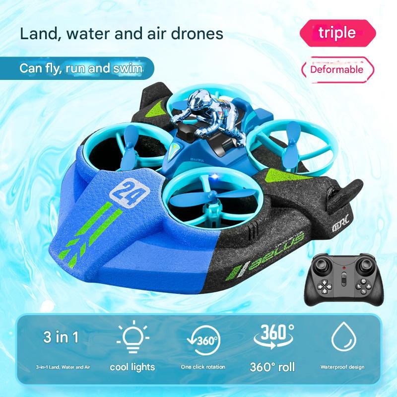 V24 Children’s Toy Remote Control Aircraft Three in One Four Axis Helicopter Sea Land and Air Flying Car for Kids