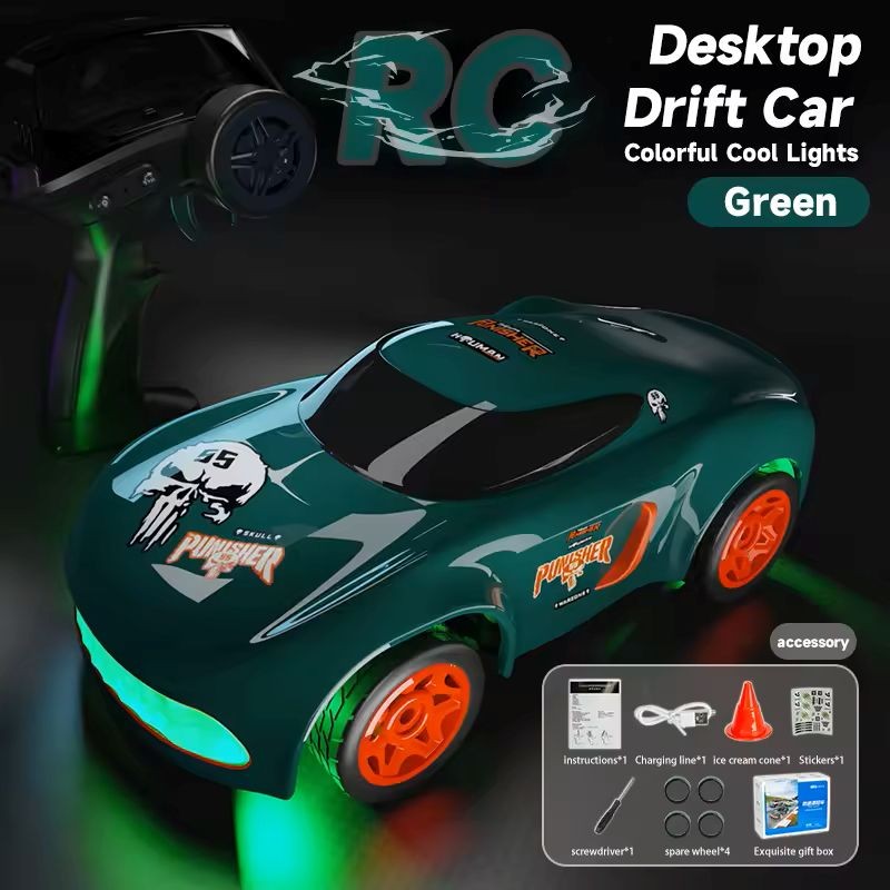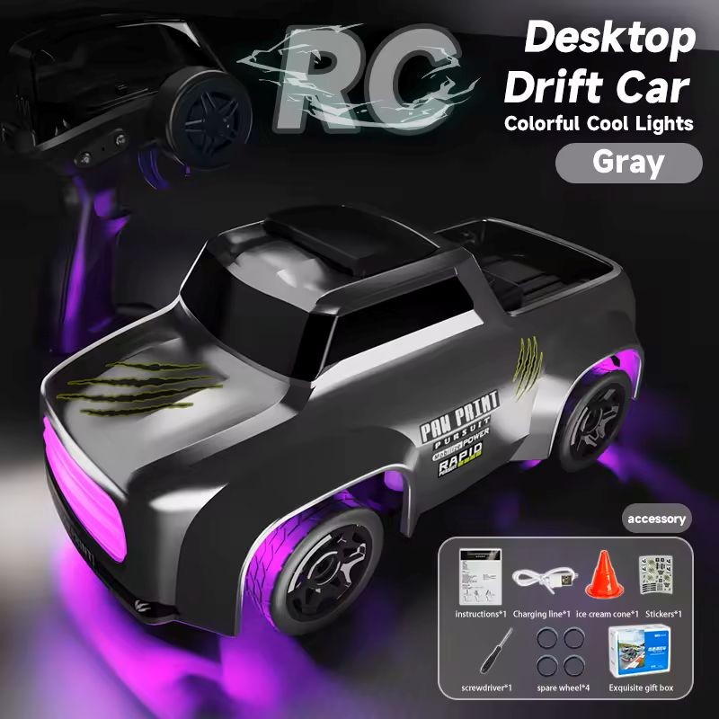 Mini RC Desktop 4WD Drift Car 1:64 High-Speed Remote Control Racing Toy with Cool Lights