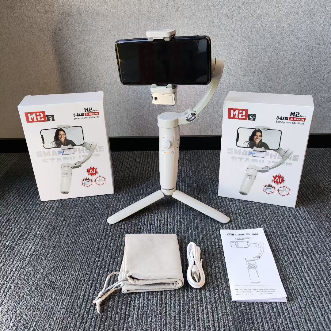 M2 Smart Phone Stabilizer Three Axis Intelligent Gimbal with AI Face Tracking for Vlog Shooting and Live Streaming