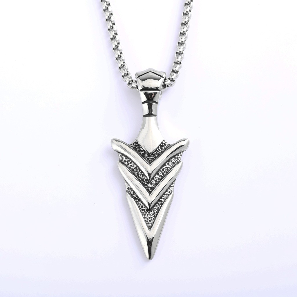 Retro Stainless Steel Pendant Men Women 3D Glossy Double-Sided Arrow Necklace