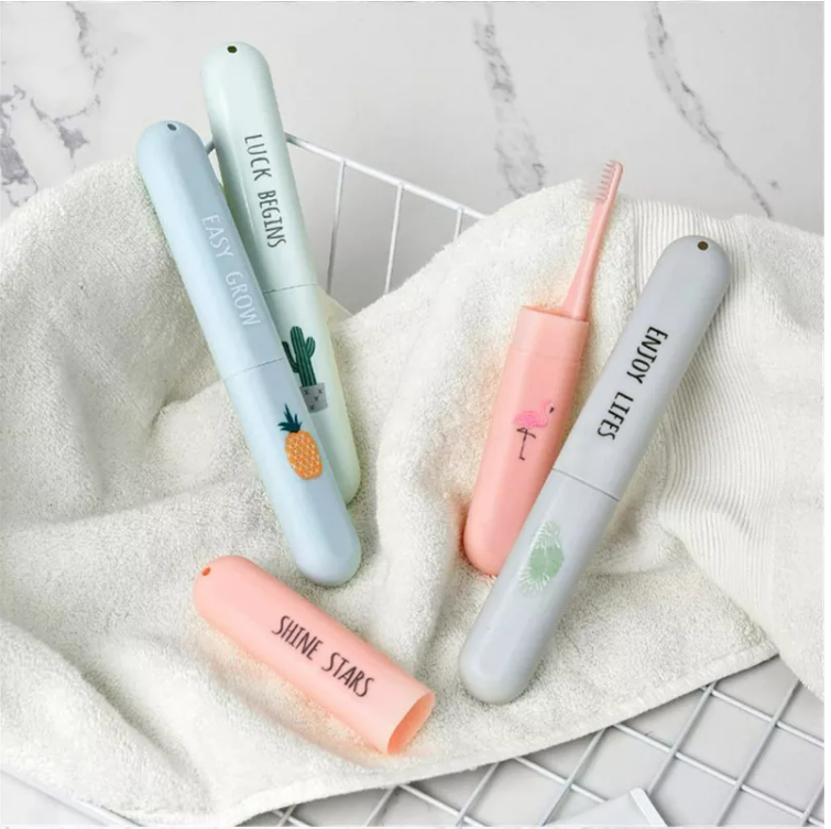 Printed Toothbrush Cover (Pack of 3) – Anti-Bacterial Plastic Toothbrush Cover Travel Case (Random Color & Design)