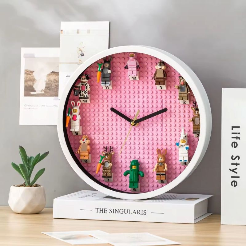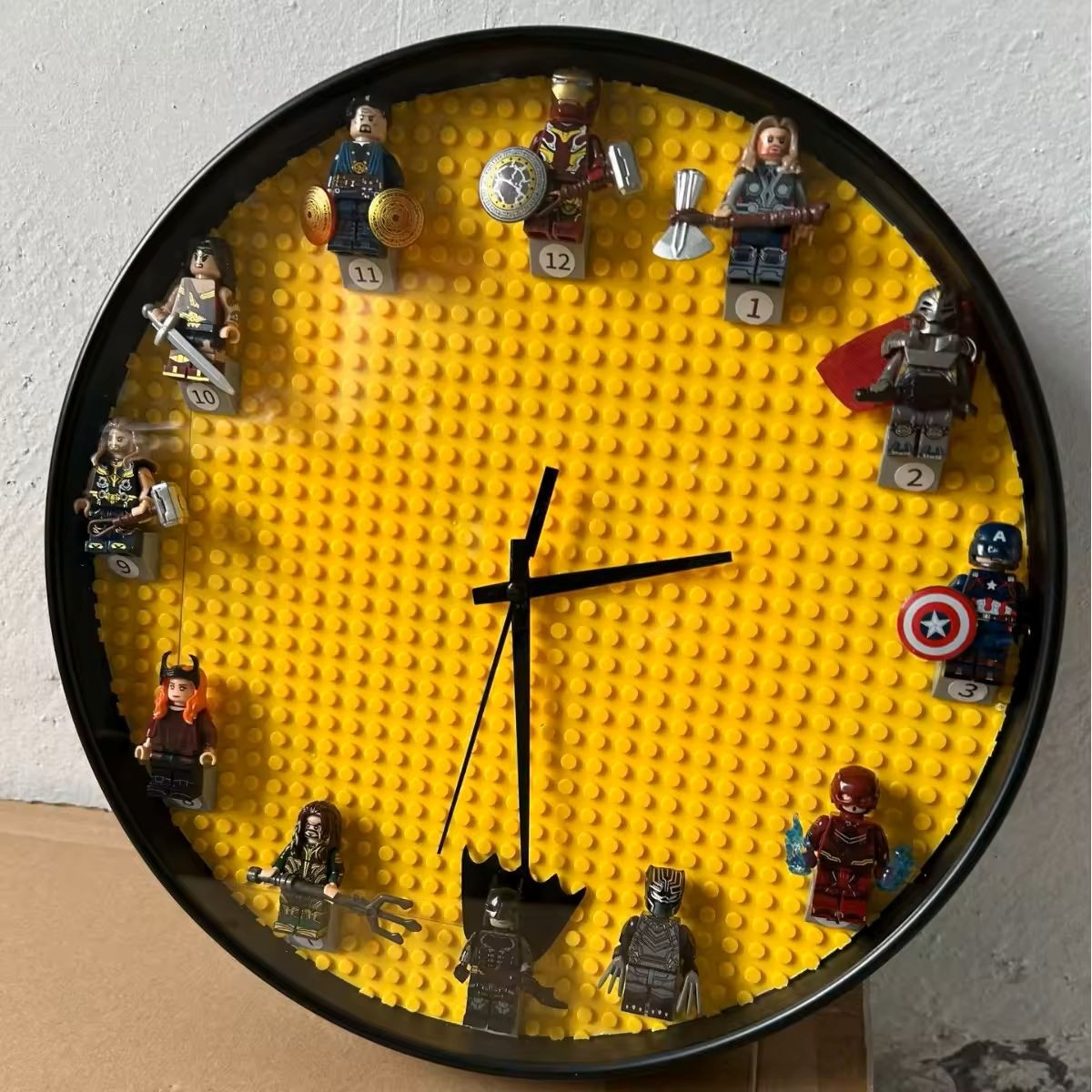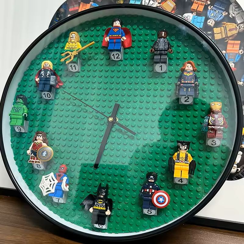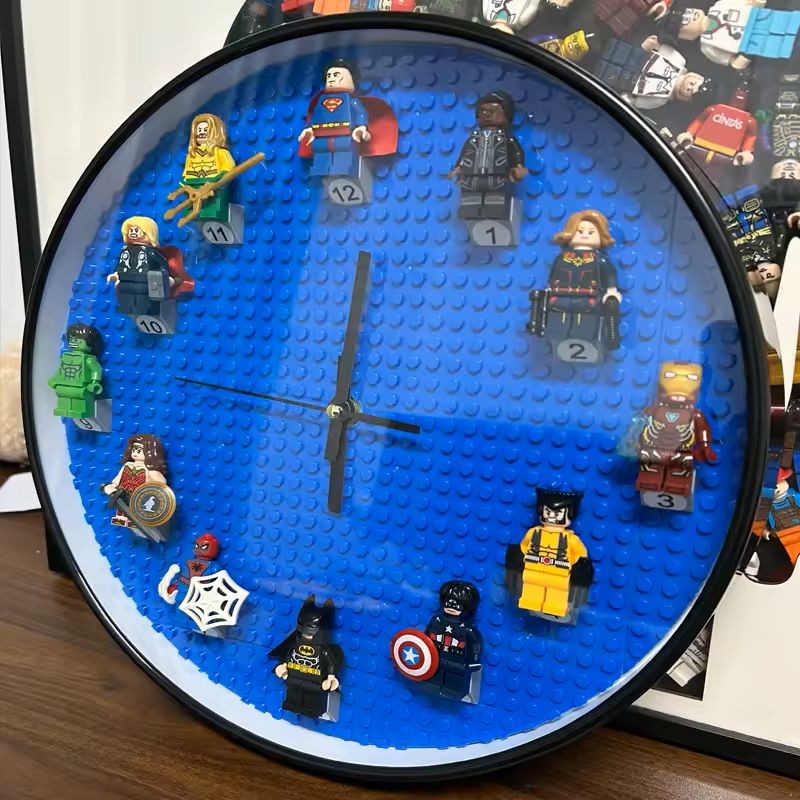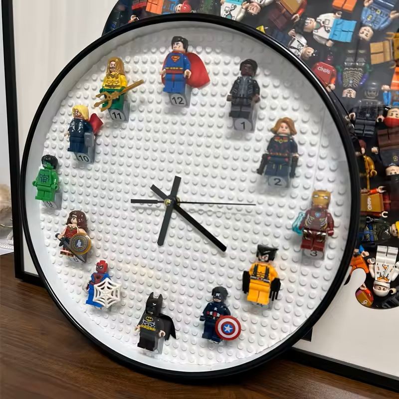 Creative Superhero Minifigure Building Block Wall Clock Kids Room Decorative Toy Theme Silent Quartz Hanging Timepiece Colorful Bedroom Home Decor Gift Idea