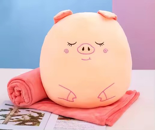 2 in 1 Plush Pillow Blanket Set Animal Cushion Soft Plush Toy Travel Pillow Blanket Combo Cute Stuffed Animal Cushion Gift for Kids