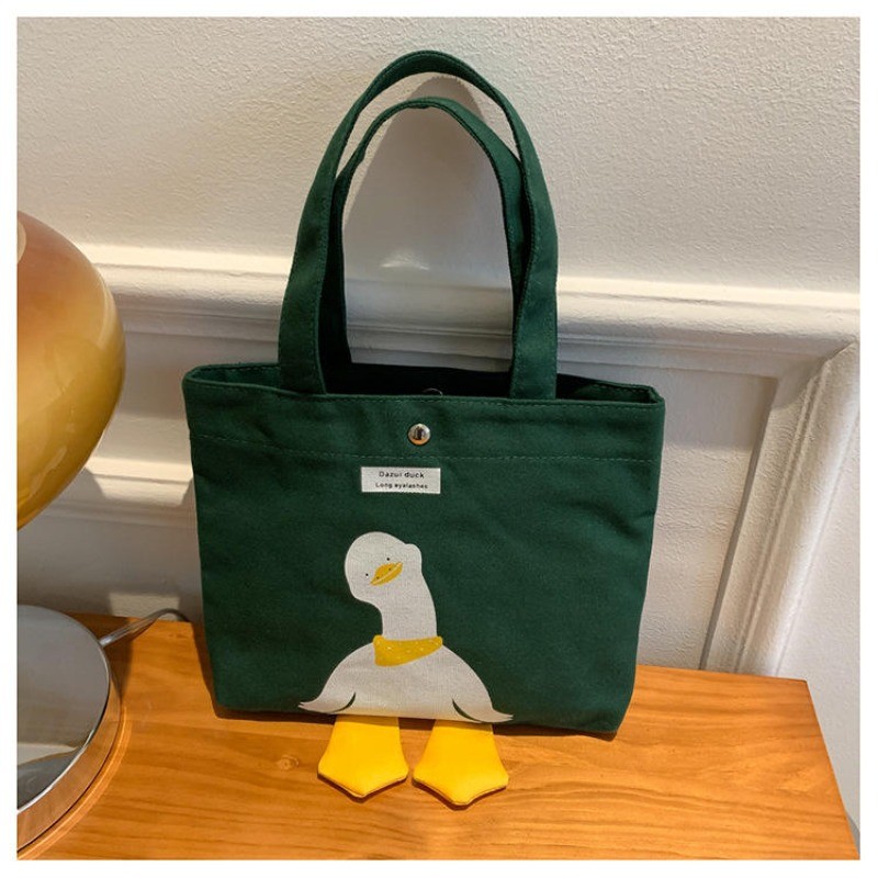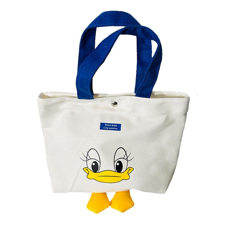 The bag is made from durable cotton canvas fabric designed for long-term use.