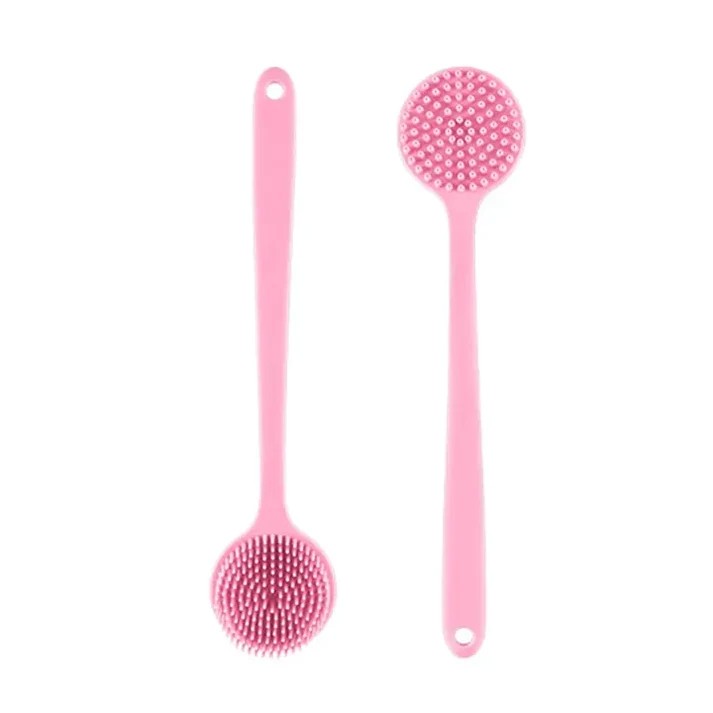 Silicone Body and Back Scrub Brush with Long Handle Soft Bristle Shower Bath Exfoliating Body Cleaner Brush for Deep Skin Cleaning and Massage Pack of One Random Color