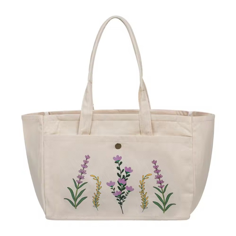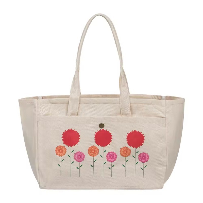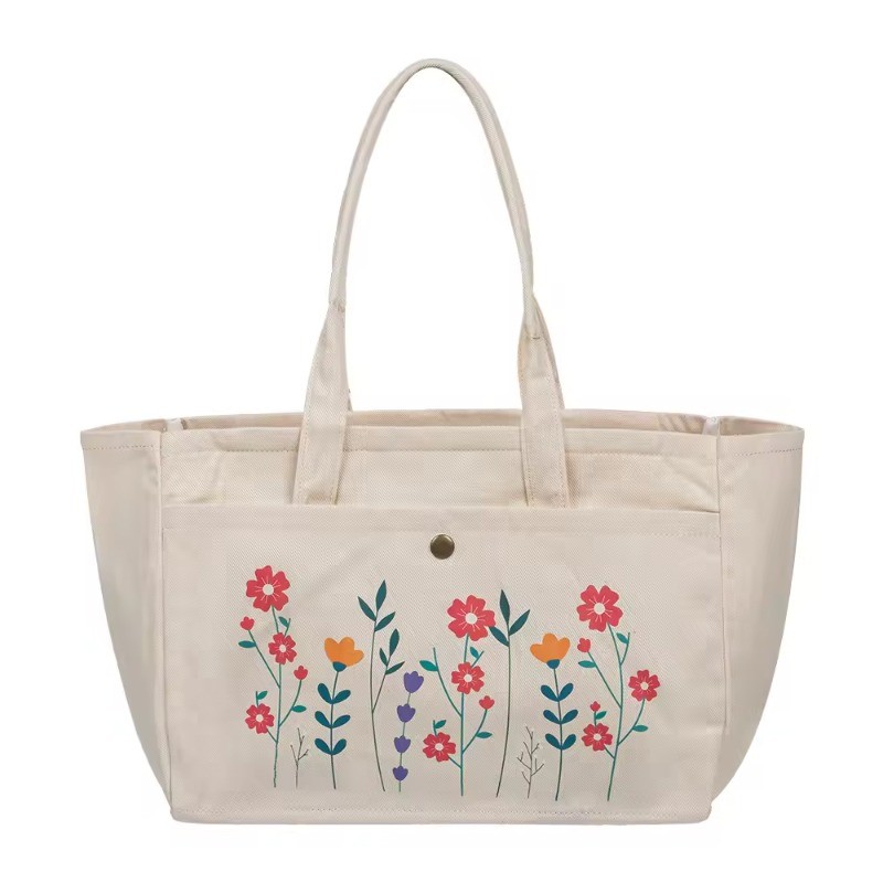 The bag is made from durable and eco-friendly cotton canvas fabric.