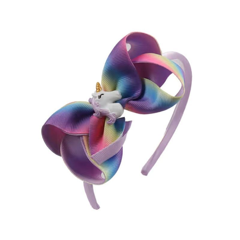 Rainbow Unicorn Bow Headband for Girls Cute Hair Band with Large Colorful Bow Cartoon Unicorn Hair Accessory for Kids Party Birthday Fashion