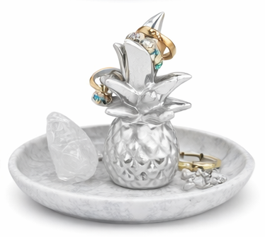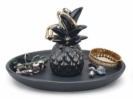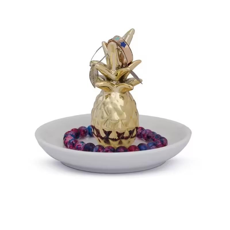 The Pineapple Trinket Holder is designed to organize small jewelry items such as rings, earrings, and tiny accessories while also serving as a cute decorative piece for your tabletop or dresser.