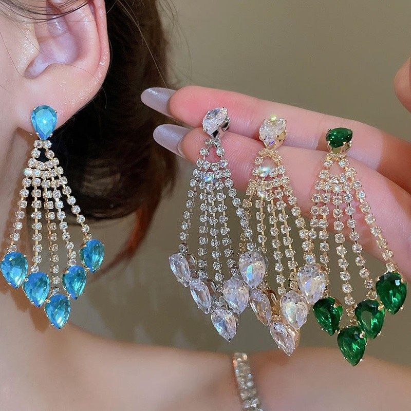 Luxe Silver Crystal Cascade Drop Earrings for Women Elegant Sparkling Rhinestone Fan Shape Party Wedding Fashion Jewelry