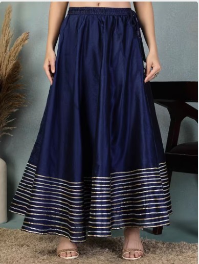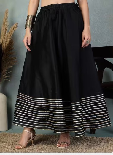 Women Flared Skirt with Golden Stripes Elegant High Waist A Line Party Wear Stylish Casual Midi Skirt Comfortable Fashion Wear for Daily and Festive Use
