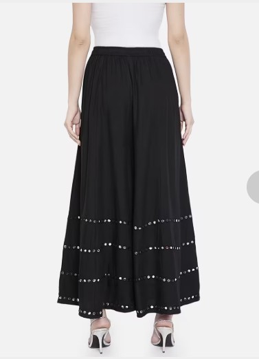 This skirt is made from soft and comfortable fabric with detailed mirror work for a stylish look.