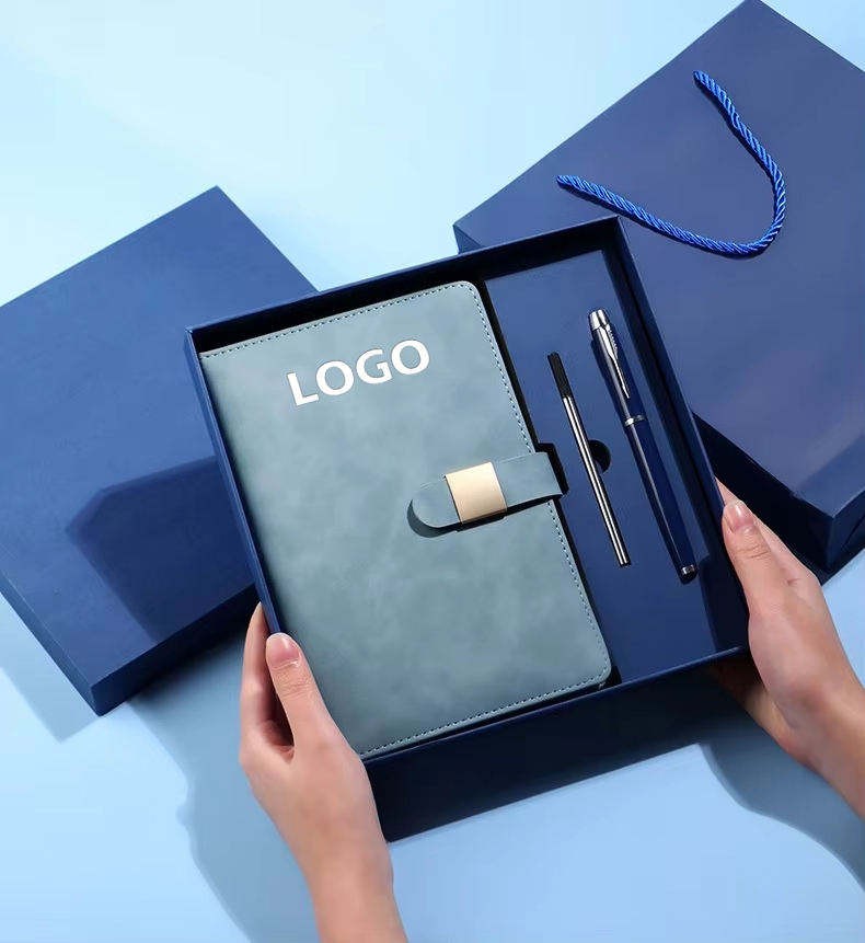 Luxury A5 diary gift set with PU leather notebook, pen, thermal mug, and USB. Perfect office gift set for business, meetings, and daily use