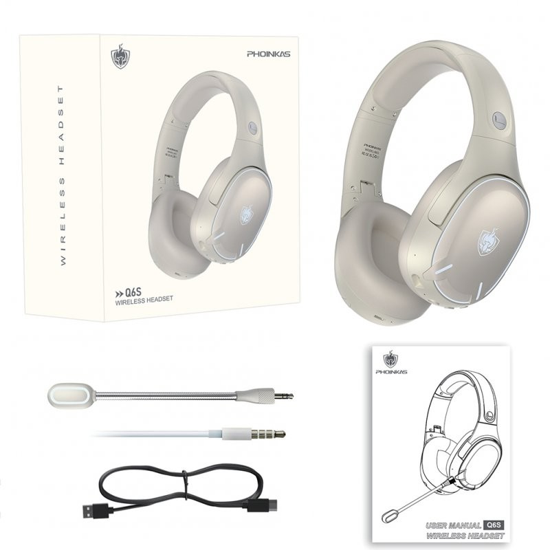 Q6S Gaming Headphones with Detachable Microphone, HiFi Triple Frequency Stereo Sound, LED Lighting and Dual Mode Wired/Wireless Connectivity for PC, Laptop and Mobile