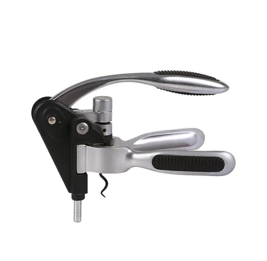 It uses a lever mechanism to quickly remove corks with minimal effort by simply pressing and lifting the handle.