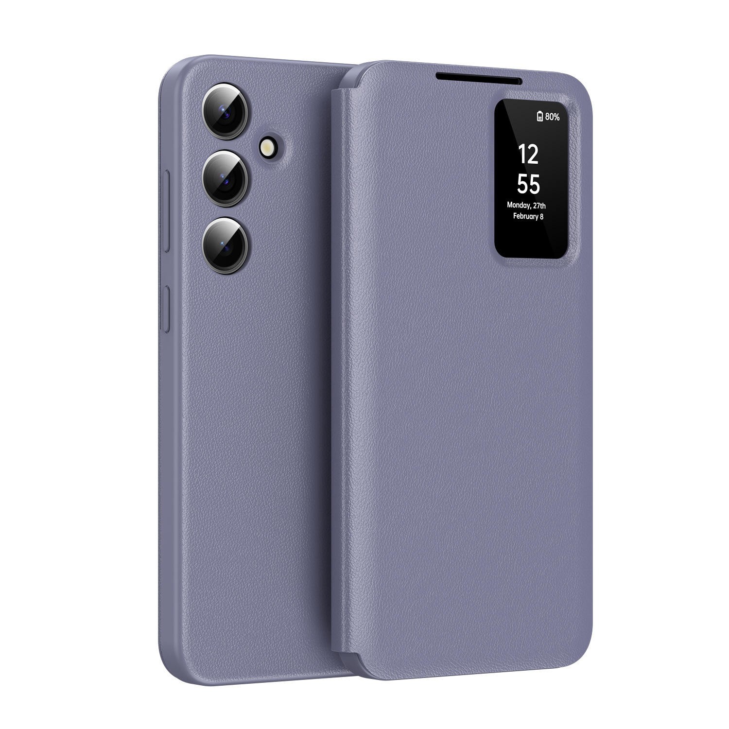 The flip cover is designed to fold into a stable kickstand for convenient landscape viewing of media.