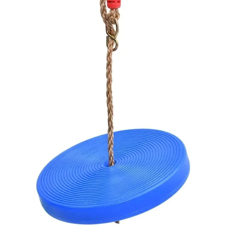 The disc seat is built wide to increase stability, allowing children to safely sit or stand while swinging. This specific swinging motion is excellent for helping kids develop core strength, balance, and coordination.