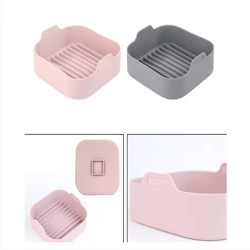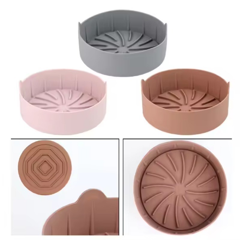 Round & Square Non-Stick Reusable Air Fryer Silicone Pot with Handles, Heat Resistant BPA Free Liners for Oven Microwave Dishwasher Safe Basket Tray Accessories