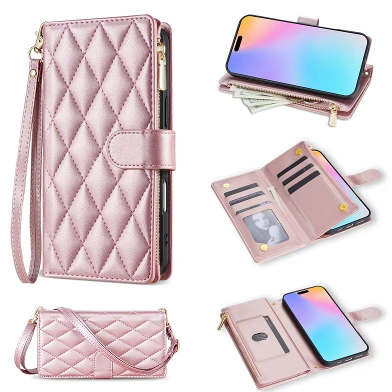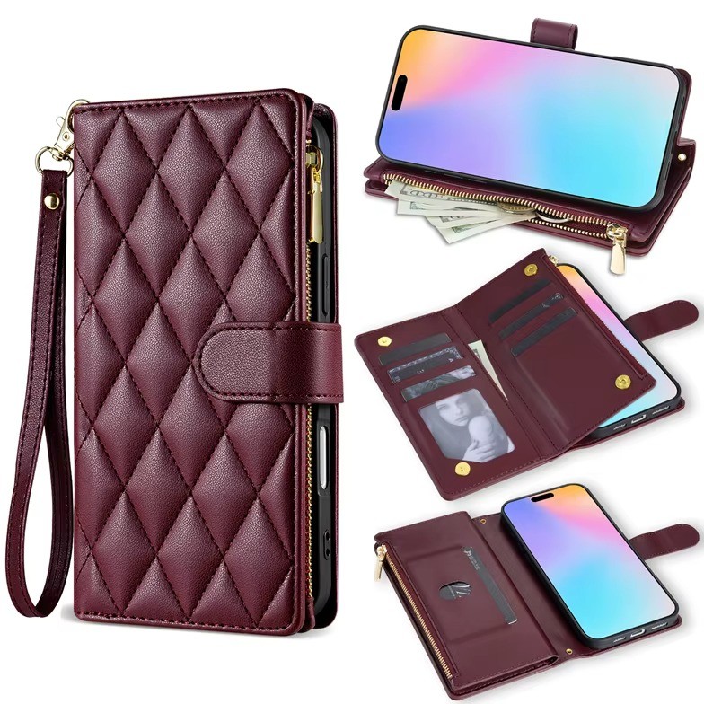 Samsung Galaxy S26 S26 Plus S26 Ultra Wallet Case Zipper PU Leather Full Body Protective Cover with Wrist Strap Geometric Pattern Card Holder Case
