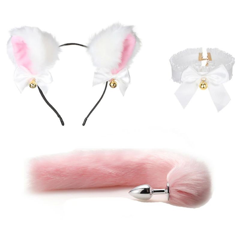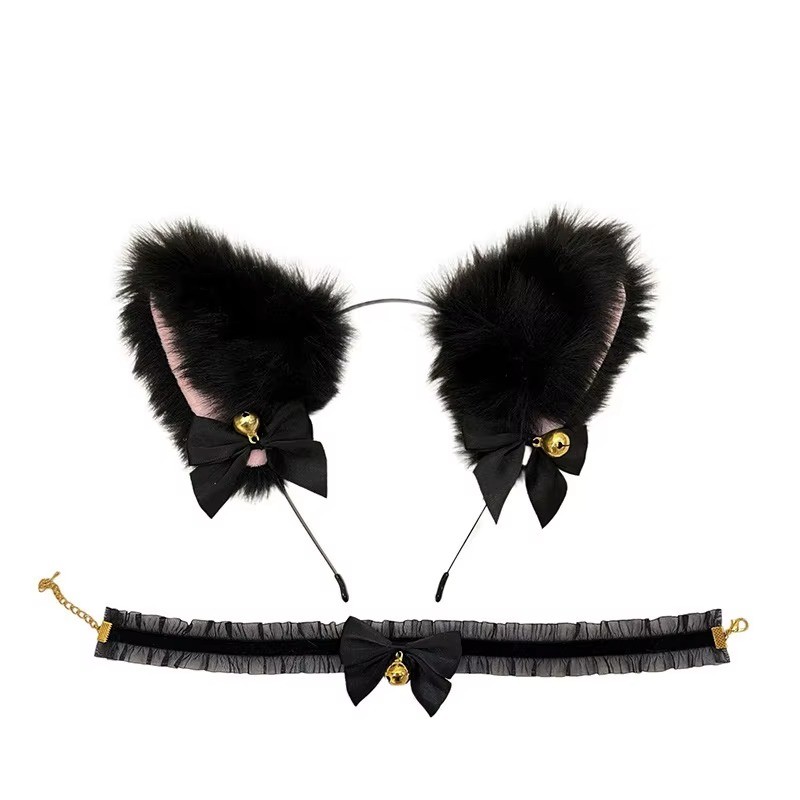 Simulated Animal Ear Plush Headband Cat Ears Cosplay Hair Hoop Cute Soft Headdress with Tail Net Red Accessories for Women Girls Party Wear