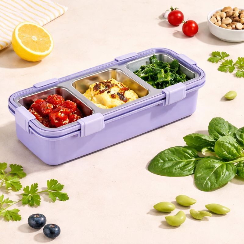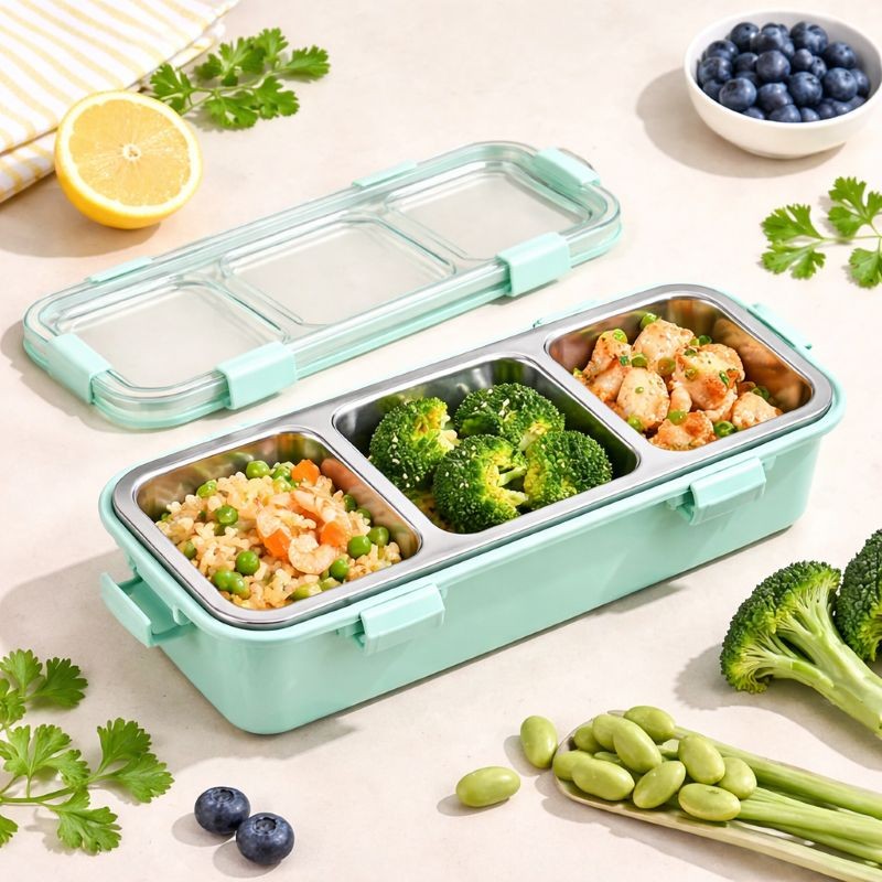 Stainless Steel Compartment Lunch Box Leakproof Multi Section Food Storage Container Bento Lunch Box For Office School Travel