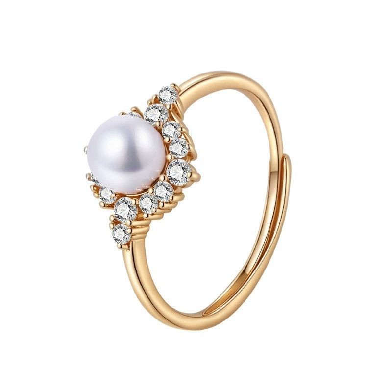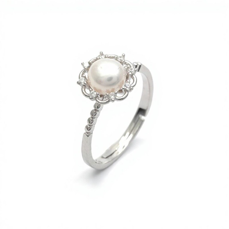 Sterling Silver Natural Freshwater Pearl Ring Adjustable Elegant Minimalist Jewelry for Women Daily Wear Gift Trendy Design