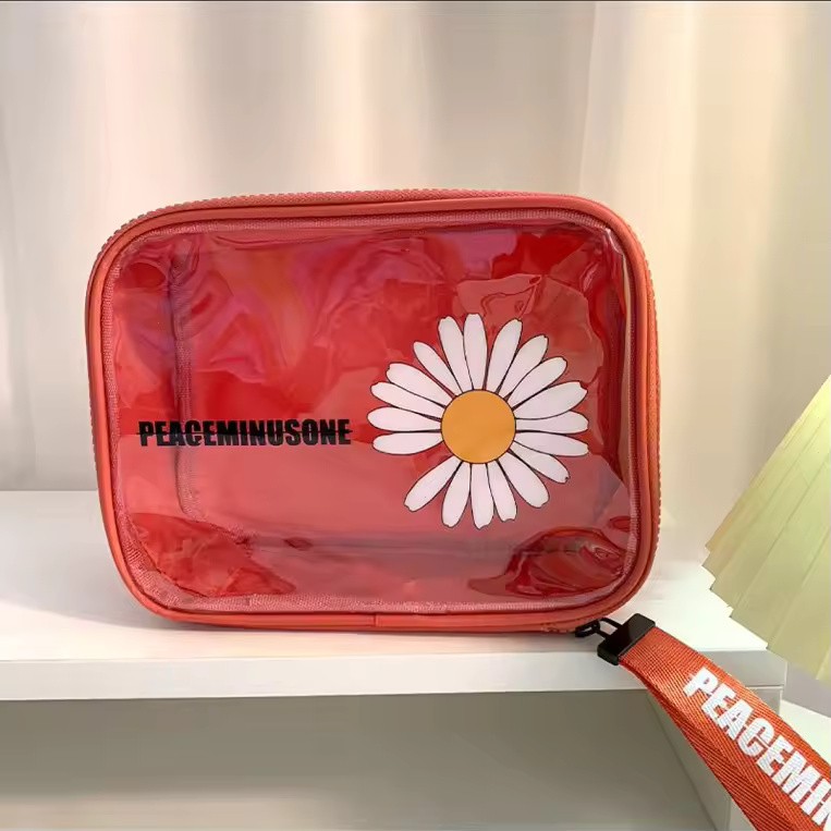 Transparent Flower Travel Pouch Organizer Floral Cosmetic and Toiletry Storage Bag with Zipper