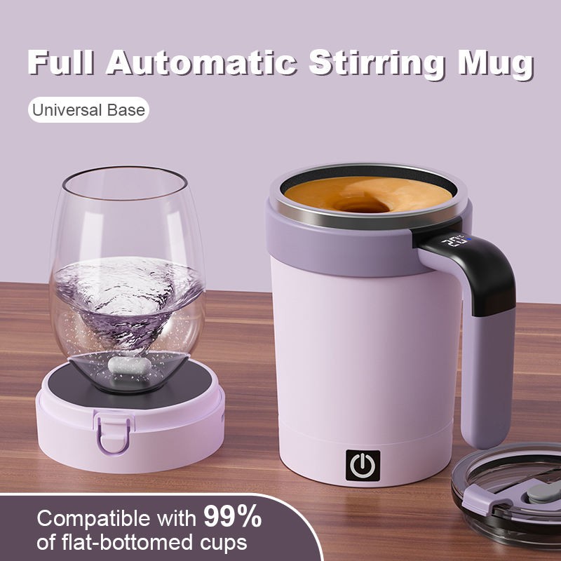A built in magnetic system rotates a small internal stirrer to mix the drink evenly with one button press.
