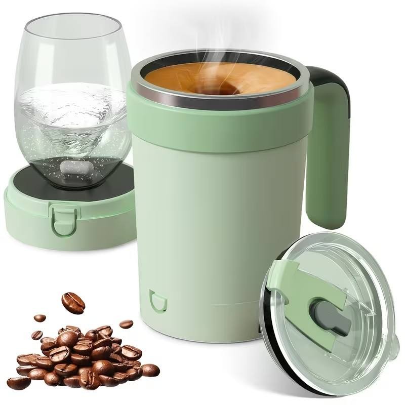 USB Rechargeable Automatic Magnetic Coffee Stirring Cup 304 Stainless Steel Leakproof Portable Self Mixing Mug with Dual Use Lid for Home Office Travel