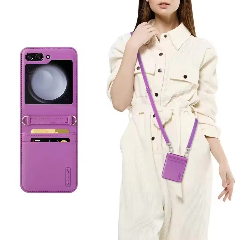 Wallet Case with Strap Leather Cover for Samsung Galaxy Z Flip 7 6 5 4 3 Card Holder Crossbody Lanyard Phone Case Shockproof Magnetic Closure Slim Protective Cover